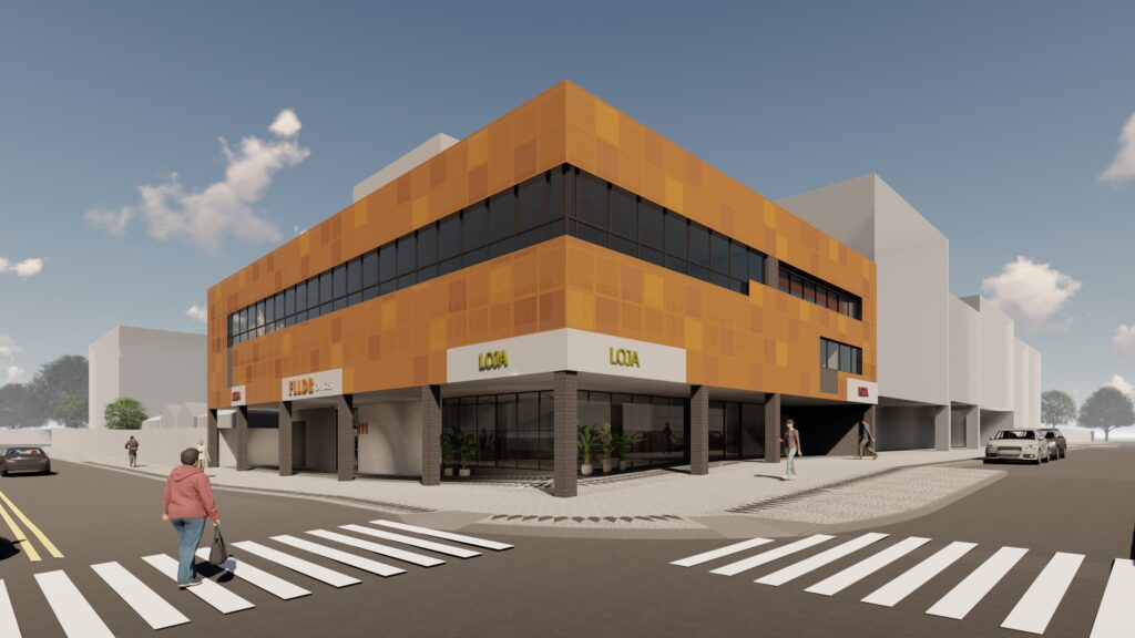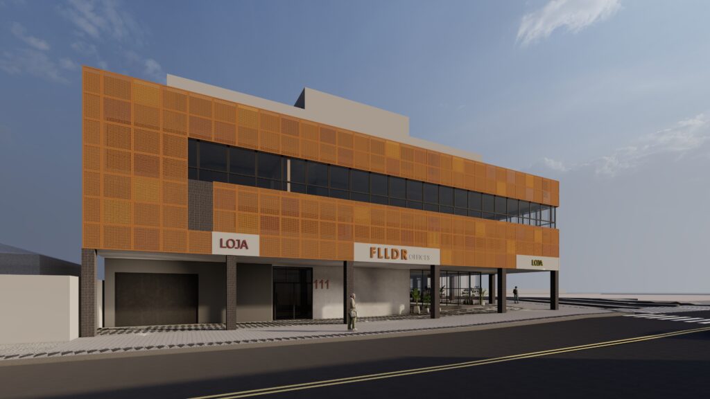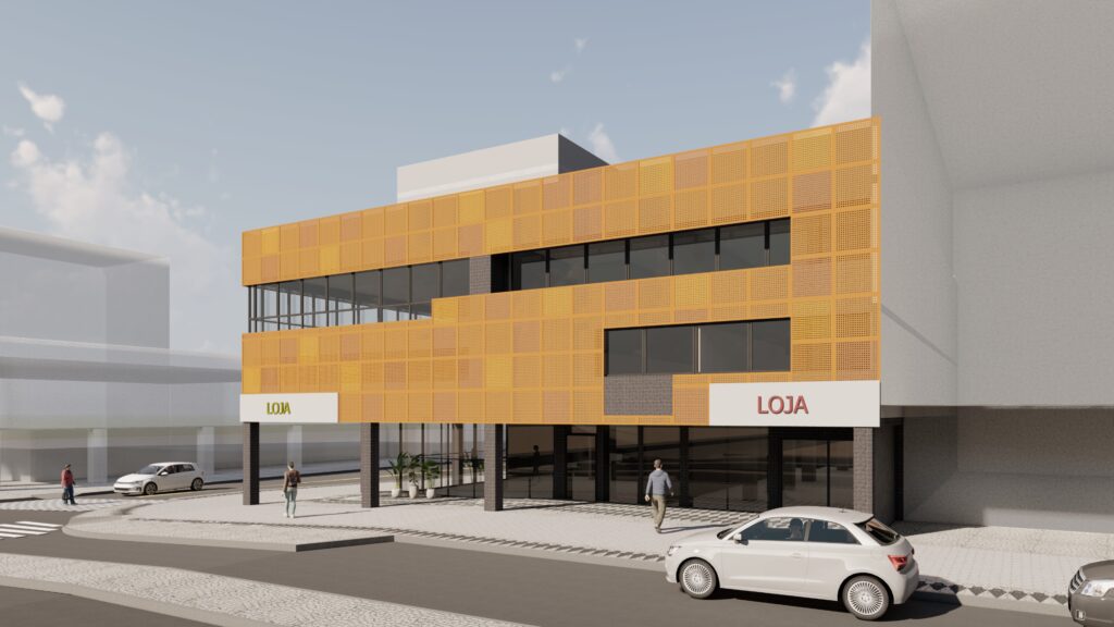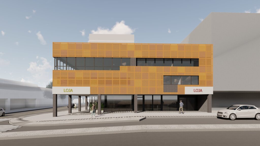 Retrofit de Edifício Comercial com conceito inovador e diferenciado de fachada. Em posição privilegiada, o imóvel comercial localizado em uma esquina chamativa precisava de um novo projeto. A equipe ArquiBusiness entrou em cena com uma arquitetura que valoriza a região e moderniza o imóvel. Foram inseridos itens de destaque, como os pilares pretos que transmitem sensação de que o prédio flutua e painéis com conceito Corten.